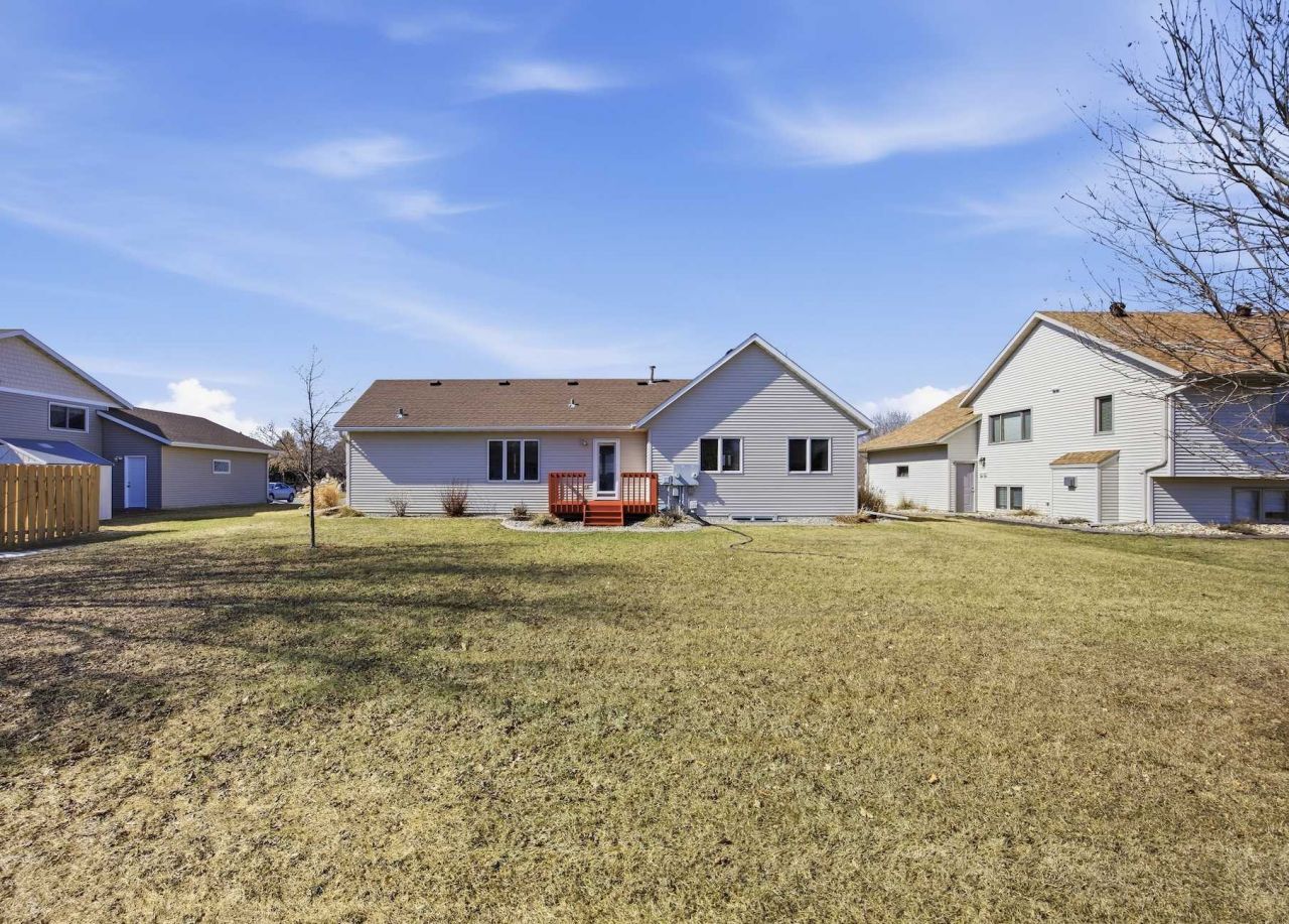 Well-built, fully finished rambler with three bedrooms on one level. Great location just blocks from Reinertsen Elementary, Azool Center, amenities and easy 8th St access. Cozy living room and defined kitchen space for functionality. Patio door to back deck overlooking large, 10,000+ SF lot. Informal dining space plus laundry on the main. Primary suite has full, private bath and walk-in closet. Two additional bedrooms plus full bath and private attached garage access on the main floor. Open railing system leads to entertaining lower level family room with egress window plus huge 4th bedroom with double closets. Two bonus rooms for flex, office, storage, play, gym, etc. Mechanical upgrades include dual fuel electrical hookup for reduced electrical rates, manual sewer isolation valve, air exchanger, furnace UVA light addition, radon mitigation system, central air and gas forced air furnace. Improvements include steel siding and gutters, flooring, windows, roof, doors and more. Less than 1,600 in special assessments remain. Kochmann built, well-maintained, clean and move-in ready!